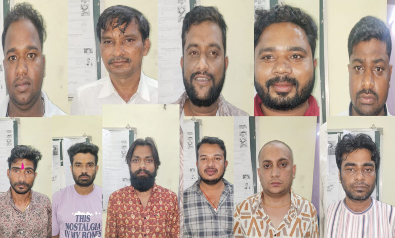 सूचना के आधार पर पुलिस ने तत्काल टीम गठित कर घेराबंदी की और मौके से 16 जुआरियों को हिरासत में लिया। पकड़े गए आरोपियों में मोहम्मद फहीम (38, गंजपारा, दुर्ग), प्रमोद निवारे (37, चंगोराभांठा, रायपुर), रोशन कुमार (34, इंद्रप्रस्थ कॉलोनी, रायपुर), अनिकेत लक्ष्यवाणी (27, धमतरी), राजीव तिवारी (34, शक्ति बाजार, रायपुर), केवलदास भारती (30, कमल विहार, रायपुर), नागेश्वर साहू (29, कांदूल, रायपुर), ओमप्रकाश चंद्रा (32, सारंगगढ़-बिलाईगढ़), जितेंद्र सिंधी (32, इंद्रप्रस्थ, रायपुर), मनीष पटेल (30, लाखेनगर, रायपुर), संजय महेश्वरी (50, गंजपारा, दुर्ग), पप्पू साहू (38, राजीव नगर, दुर्ग), हेमलाल ढीमर (26, रूआंबांधा, दुर्ग), परमानंद कुर्रे (30, हंचलपुर, धमतरी), कमलेश साहू (54, बोरियाखुर्द, रायपुर), और जितेंद्र सिंह (32, बोरियाखुर्द, रायपुर) शामिल हैं।