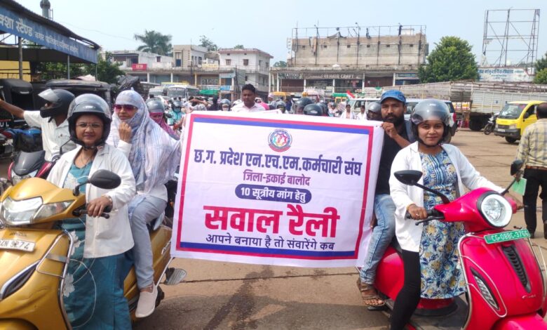 आज, हड़ताल के 24वें दिन, बालोद में एनएचएम संविदा कर्मचारियों ने बस स्टैंड से घड़ी चौक होते हुए जिला भाजपा कार्यालय तक बाइक रैली निकाली। रैली के दौरान कर्मचारियों ने नारेबाजी करते हुए अपनी मांगों को दोहराया और जिला भाजपा अध्यक्ष श्री चेमन देशमुख को अपनी मांगों का ज्ञापन सौंपा। कर्मचारियों ने सवाल उठाया, “आपने बनाया है तो सवारेंगे कब?”, जो उनकी मांगों के प्रति सरकार की उदासीनता को दर्शाता है।