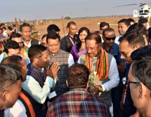 हेलीपैड स्थल पर छत्तीसगढ़ प्रदेश कोसरिया पटेल समाज के पदाधिकारियों, जिले के जनप्रतिनिधियों तथा जिला प्रशासन के आला अधिकारियों ने मुख्यमंत्री का पारंपरिक तरीके से स्वागत किया। इस अवसर पर पुष्पगुच्छ भेंट कर अभिनंदन किया गया।