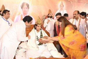 चादर तिलक समारोह संत-समाज की उपस्थिति में वैदिक मंत्रोच्चार एवं परंपरागत धार्मिक विधि-विधान के साथ संपन्न हुआ। मंच पर संत-महात्माओं एवं वरिष्ठ अनुयायियों कीगरिमामयी मौजूदगी ने समारोह की पवित्रता और भव्यता को और बढ़ा दिया।